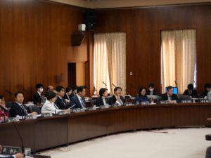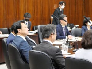 続けて、国交部会・国対正副会議・環境委員会理事会・環境委員会に出席、さらに国対に戻り情報共有や調整等など。