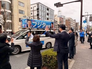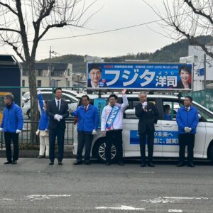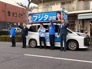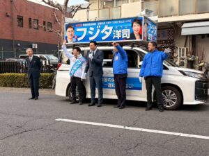 ○2/6(金) フジタ洋司候補の街頭演説会に参加しました。寒い中ではありましたが皆さんの暖かい激励をいただきました。