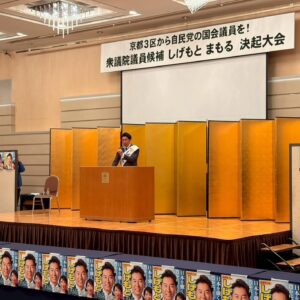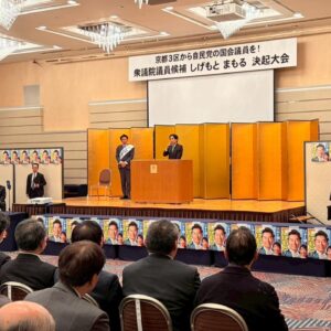 その後しげもとまもる候補の決起大会に出席。夜には北区山本恵一市議の担当される勝目やすし個人演説会、山科区大澤あきひさ府議の担当されるフジタ洋司候補個人演説会にそれぞれ弁士として登壇させていただきました。