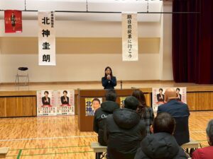 ○2/2(月) 本日は北区谷口みゆき市議の担当される勝目やすし個人演説会、山科区富きくお市議の担当されるフジタ洋司個人演説会にそれぞれ弁士として登壇させていただきました。