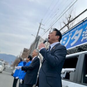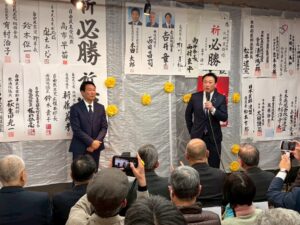 ムクダ先生をご支援いただいております後援会の皆様にご挨拶させていただきましたのち、東山区平山たかお市議の担当されるフジタ洋司候補個人演説会に弁士とし登壇させていただきました。