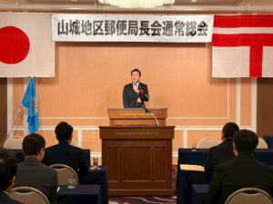 郵便局の皆さまには、地域の通信ネットワークの確立や物流の確保など、日頃より地域社会を支えていただいておりますことに深く感謝申し上げ、その思いを込めご挨拶いたしました。